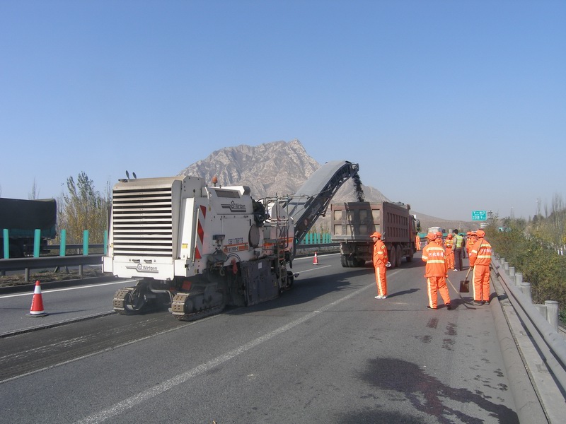 上午10點20分,在張家口方向K121+670~K121+780路段,施工單位按照既定的養(yǎng)護(hù)工程交通管制方案,對試驗段的行車道和緊急停車帶部分先做好了隔離封閉,各崗位施工人員和銑刨機(jī)、壓路機(jī)、自卸汽車、灑水車等配套的機(jī)械設(shè)備全部到場就位。公司路面專項工程部與本項工程的監(jiān)理、設(shè)計單位同時到達(dá)現(xiàn)場進(jìn)行監(jiān)督檢查。