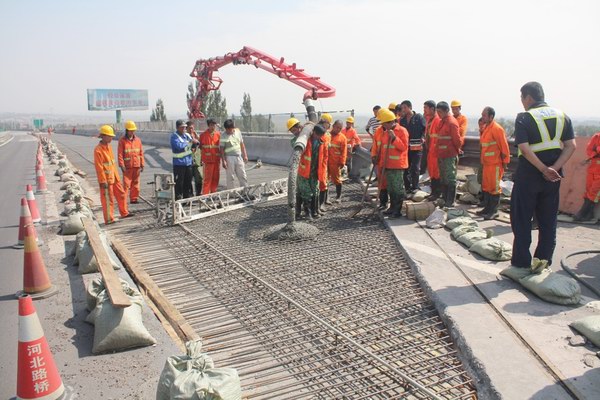 在項目實施過程中采取全過程監(jiān)測,通過監(jiān)測數(shù)據(jù)指導(dǎo)施工。在項目施工中嚴(yán)格質(zhì)量、進(jìn)度和安全管理。監(jiān)理工程師全過程旁站,發(fā)現(xiàn)問題要求施工單位及時整改。公司項目工程師每天對施工過程進(jìn)行督導(dǎo)和檢查。為確保施工安全,加大了交通管制協(xié)調(diào)力度。橋面施工中由高速交警、路政做好高速公路的交通管制,橋下由地方交警、路政配合做好交通疏導(dǎo),車輛分流處設(shè)值守點,并委托地方路政協(xié)調(diào)解決橋下有關(guān)商戶的影響事宜,有效確保了施工進(jìn)度和安全。(工程養(yǎng)護(hù)部 李強(qiáng))