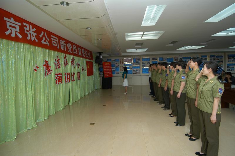 面對(duì)黨旗,舉起右手,緊握拳頭,莊嚴(yán)宣誓:“我志愿加入中國(guó)共產(chǎn)黨,擁護(hù)黨的綱領(lǐng),遵守黨的章程,履行黨的義務(wù),執(zhí)行黨的決定……”。在紀(jì)念建黨88周年之際,公司黨委在四樓會(huì)議室為今年新加入中國(guó)共產(chǎn)黨的武志麗等10名同志舉行了入黨宣誓儀式。公司黨辦室主任石林叢同志主持儀式并領(lǐng)誓。