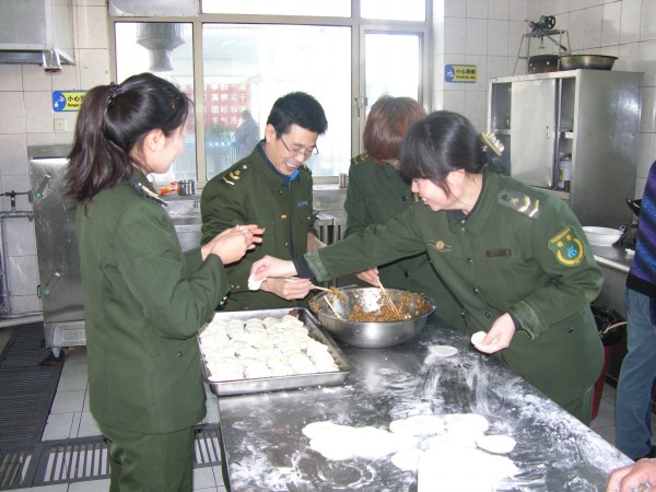 這天,食堂的師傅早早就準備好了包餃子的材料,十多名職工一起幫忙包餃子。大家圍在一起各顯身手,揉面,搟皮,包餃子,雖然有的同志手法略顯生疏,但是干得卻是十分帶勁,一絲不茍。大家邊包餃子邊交談,歡樂的笑聲不時傳來,就像一家人一樣其樂融融。熱騰騰的餃子出鍋了,大家圍座在一起津津有味地吃著自己包的餃子,不但驅走了冬日的嚴寒,心里更是有種別樣的溫暖。