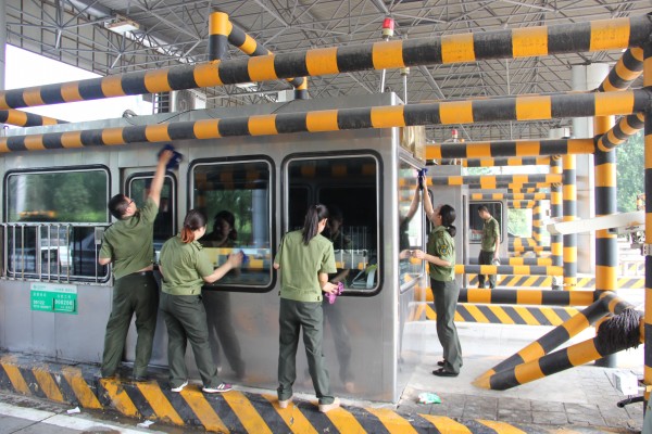 近日,由于暑期車流量激增,收費(fèi)一線環(huán)境衛(wèi)生的保持成了一大難題。沙城站黨支部書記張麗芝帶領(lǐng)支部委員和其他黨員領(lǐng)導(dǎo)干部到收費(fèi)一線帶頭清理環(huán)境衛(wèi)生,擦臺(tái)面、撿垃圾、清掃島頭,專撿臟活累活干,以實(shí)際行動(dòng)踐行黨的宗旨,保持公仆情懷,牢記共產(chǎn)黨員永遠(yuǎn)是勞動(dòng)人民的普通一員,密切聯(lián)系群眾,全心全意為人民服務(wù)。黨員鄭立、胡彥梅忙碌的身影穿梭在收費(fèi)亭與收費(fèi)車道之間,累得滿頭大汗,充分發(fā)揮了黨員的先鋒模范作用。收費(fèi)班長薛伯東、機(jī)電維護(hù)員王嶸,收費(fèi)員李巖、佟桂軍、譚鵬鵬等同志,也都爭先恐后地?fù)屩伞=?jīng)過三個(gè)多小時(shí)的奮戰(zhàn),收費(fèi)亭、收費(fèi)廣場(chǎng)、安全島頭、排水渠等部位得到了全面徹底的清理,站區(qū)面貌煥然一新。此時(shí),大家早已汗流頰背,卻沒有一個(gè)人喊苦喊累,看著干凈整潔的站區(qū)環(huán)境欣慰地笑了,因?yàn)槟転檫^往司乘提供干凈整潔、安全暢通的行車環(huán)境是我們最大的快樂,能夠?qū)崒?shí)在在地為司乘提供優(yōu)質(zhì)服務(wù)是黨員領(lǐng)導(dǎo)干部和職工們共同的心聲。