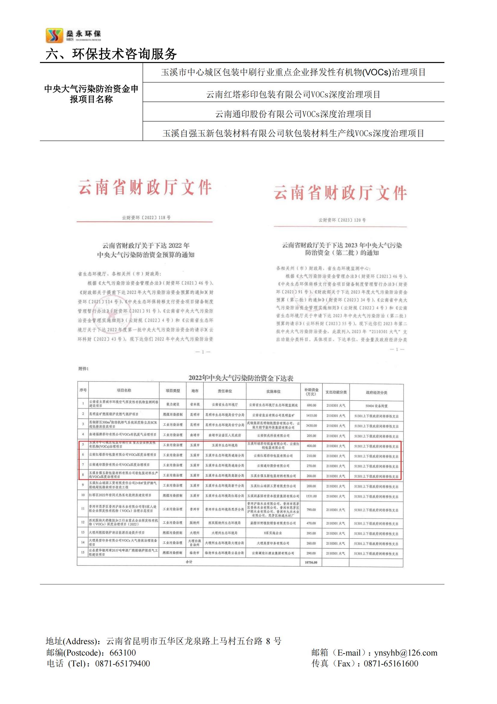 截止2023年10月,公司幫助云南省多個行業(yè)企業(yè)成功申報的中央大氣污染防治資金已入庫項目共計20余個,申報項目已獲批總資金近一億余元。公司承接的云南省內中央大氣污染防治資金申報項目申報成功率高,成效顯著,服務細致高效,在云南省中央大氣污染防治資金申報領域具有豐富的經(jīng)驗。