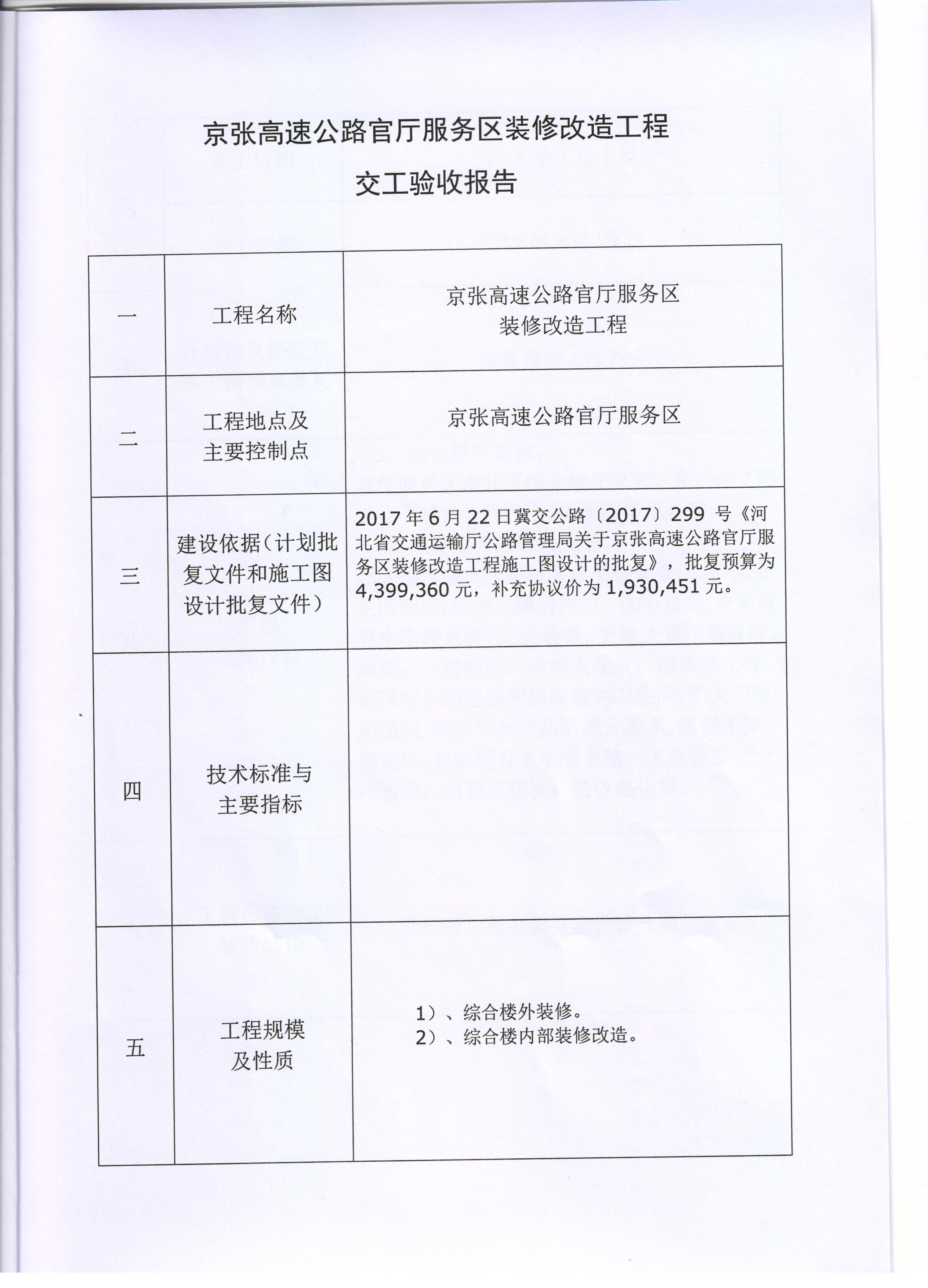 京張高速公路官廳服務(wù)區(qū)裝修改造工程交工驗(yàn)收?qǐng)?bào)告